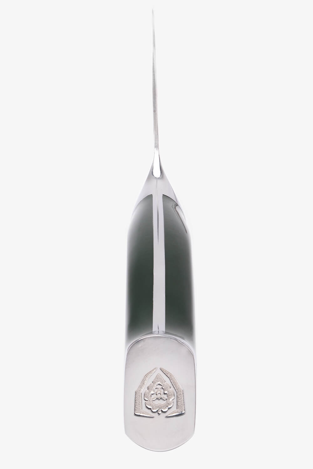 The Shogun Series X 55mm wide blade is precision forged from a single piece of 66-layered damascus high-carbon stainless steel cladding, with an ultra premium Japanese AUS-10V steel cutting core. Precise cryogenic tempering with liquid nitrogen increases the steel's crystalline structure, enhancing strength, flexibility and hardness. The increased blade width allows for improved knuckle clearance.