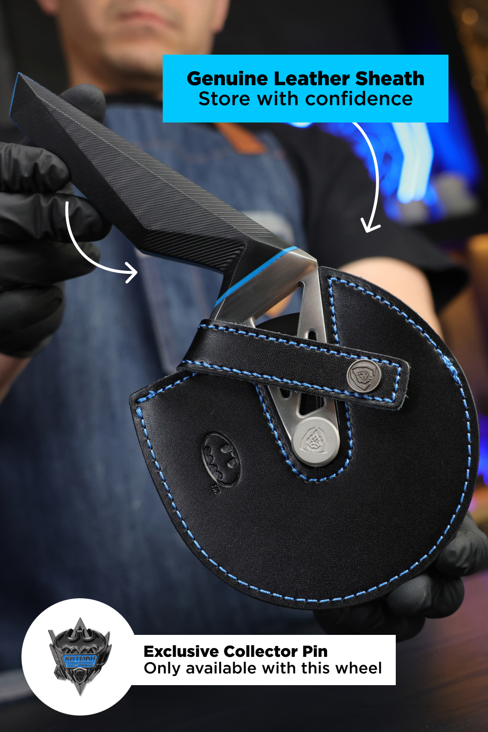 - Store in custom Batman™ leather sheath