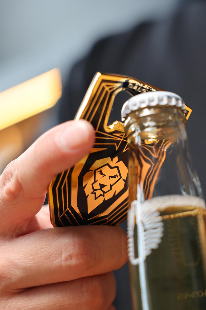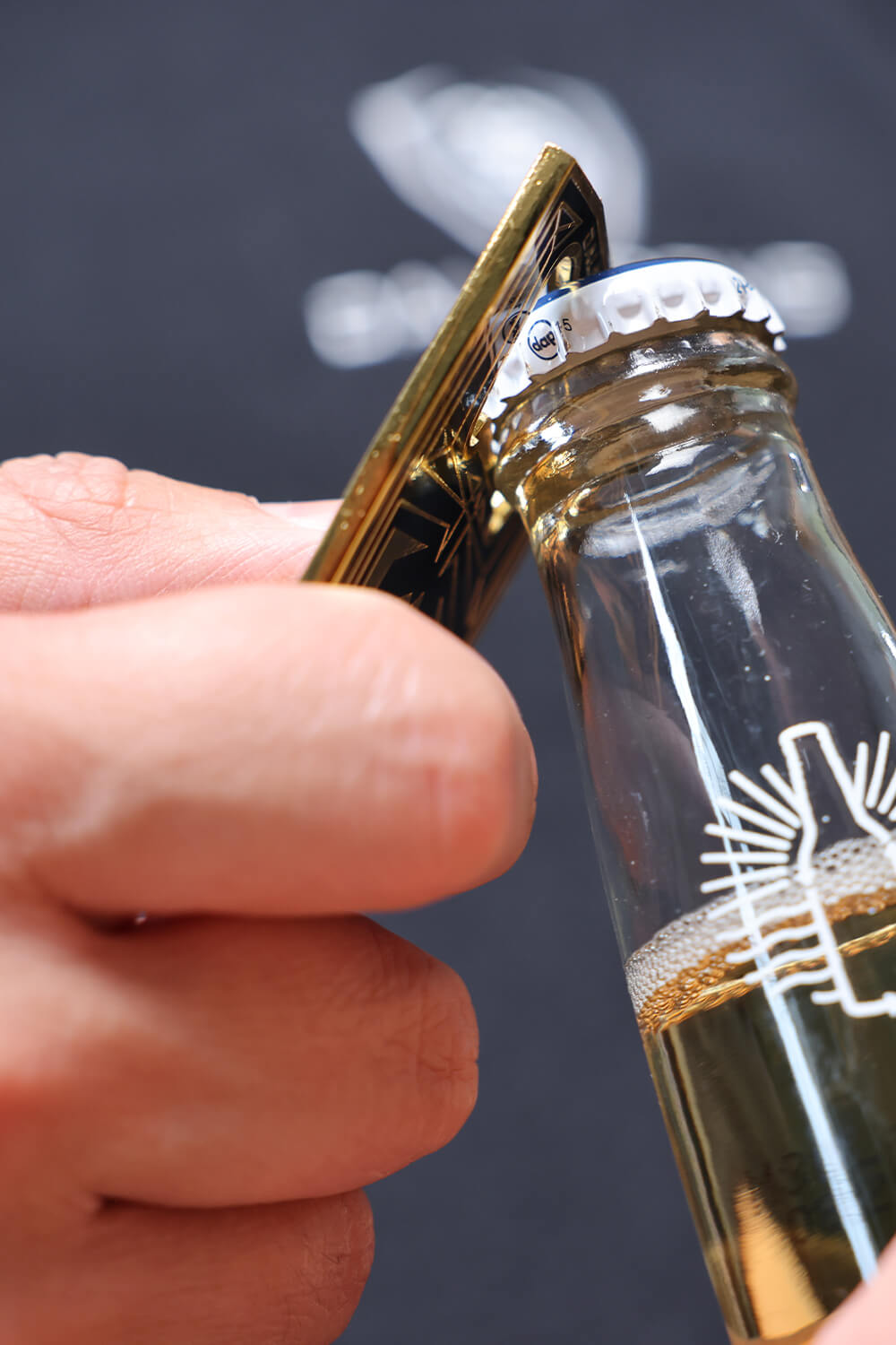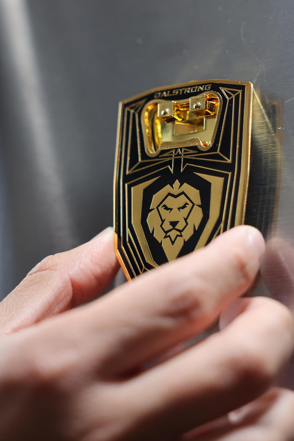 Your “for life” bottle opener, crafted in celebration of good tools, good taste and good times. Built from heavy-duty zinc alloy with a satisfying weight, powered by extra strong magnets, and plated in black and gold nickel. Stand it up on display, hang it from your refrigerator, or take it wherever life takes you.