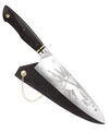 This 8” Chef Knife honors Aragorn's journey from Strider, the weathered ranger, to the King of Gondor. The blade depicts Aragorn at the Black Gate, rallying the free peoples of Middle-earth™ against impossible odds. The reverse captures the moment before transformation: Narsil, shattered for generations, on the cusp of becoming Andúril, Flame of the West. Premium German steel, rich ebony wood and copper handle, performance engineering, and precision-etched artwork. Built for collectors who demand museum-grade detail and chefs who demand performance on the cutting board.