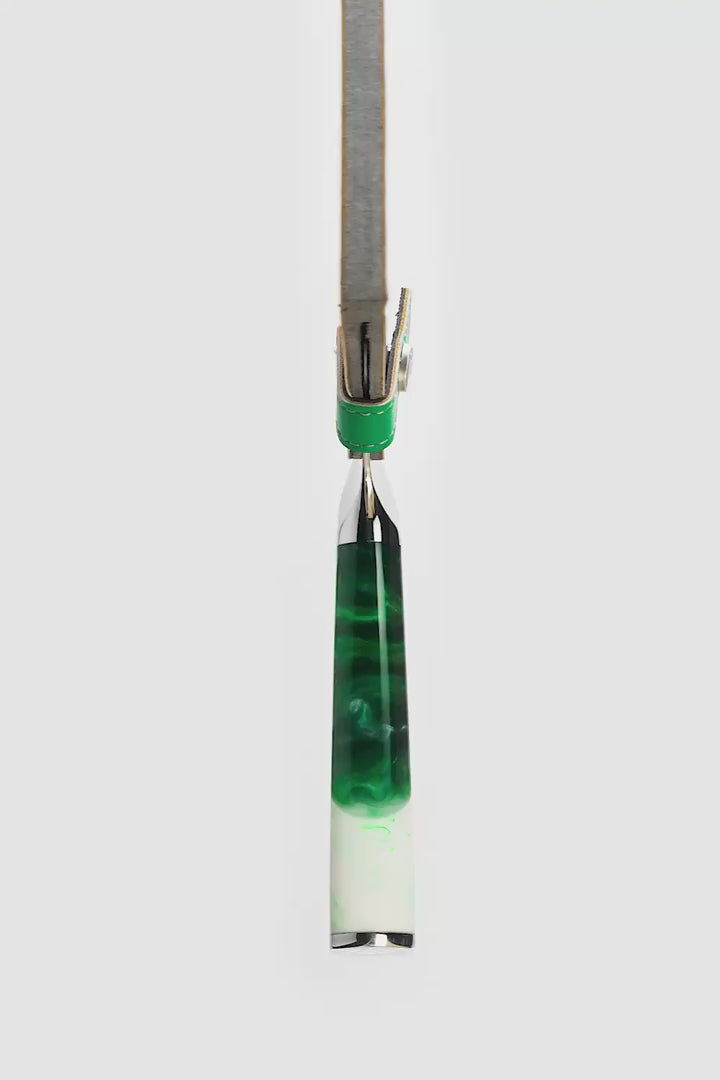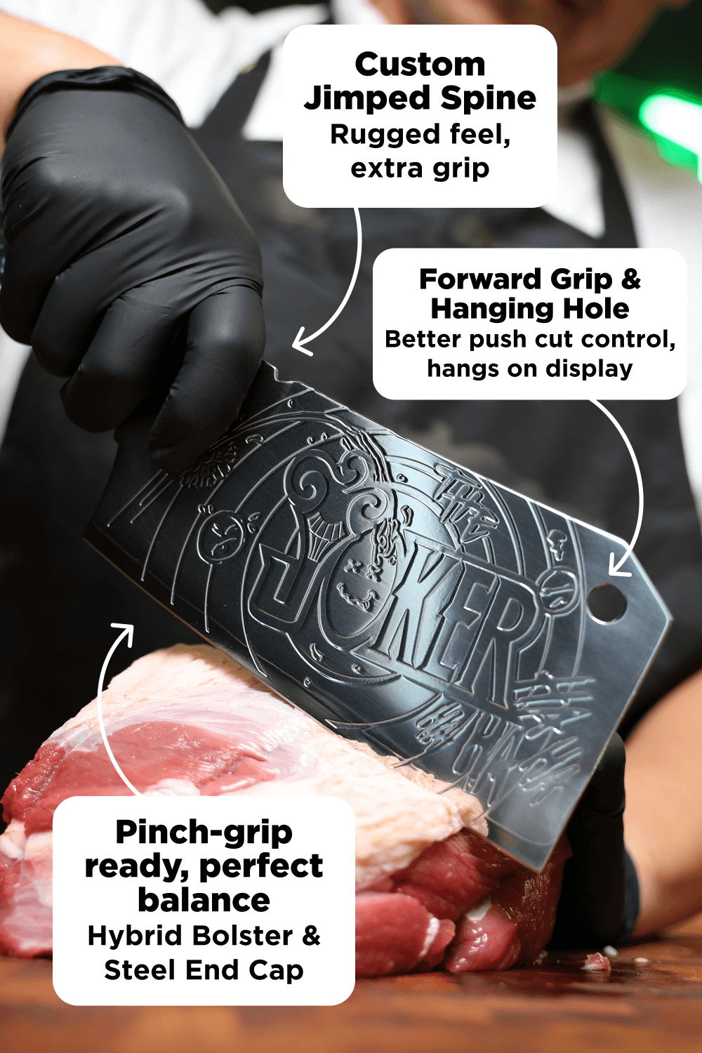 The Joker™ does things differently, and so do you. So put down the chef’s knife and pick up this one of a kind cleaver. Perfect for rapid veggie slicing, meat chopping, and aromatics crushing, with a broad blade for fast food transfer from cutting board to skillet. Each handle's kaleidoscopic resin infusion is cast one of a kind, inspired by The Joker’s™ unmistakable and unique style.