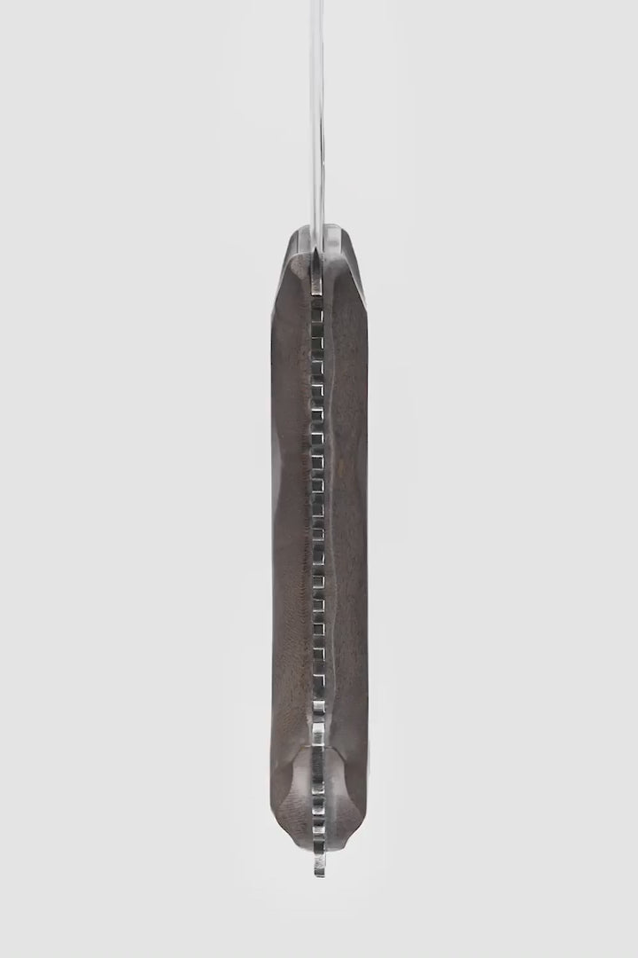 The best of the Chef Knife, Utility Knife, and Hunting Knife in one ultra-versatile, tough blade. The in-blade grip hole allows an extra grip for pulling through flesh and skinning game. Forged from ultra-durable steel and a textured wood handle for a visceral cooking experience.
