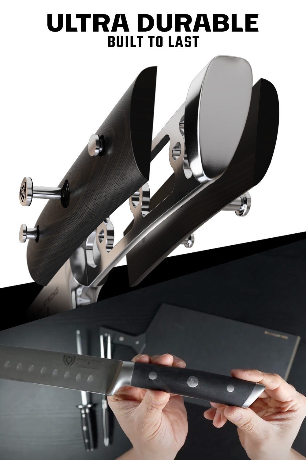 Featuring sustainably sourced, Tropical Teak wood, and paired handsomely with satin-finished steel handles, the Dalstrong Teak Cutting board functions as your all-purpose chopping, slicing and serving board. Meticulously hand-crafted from end-grain wood and filled with rich moisturizing oils, Teak is a luxury wood naturally resistant to water, bacteria, and staining.