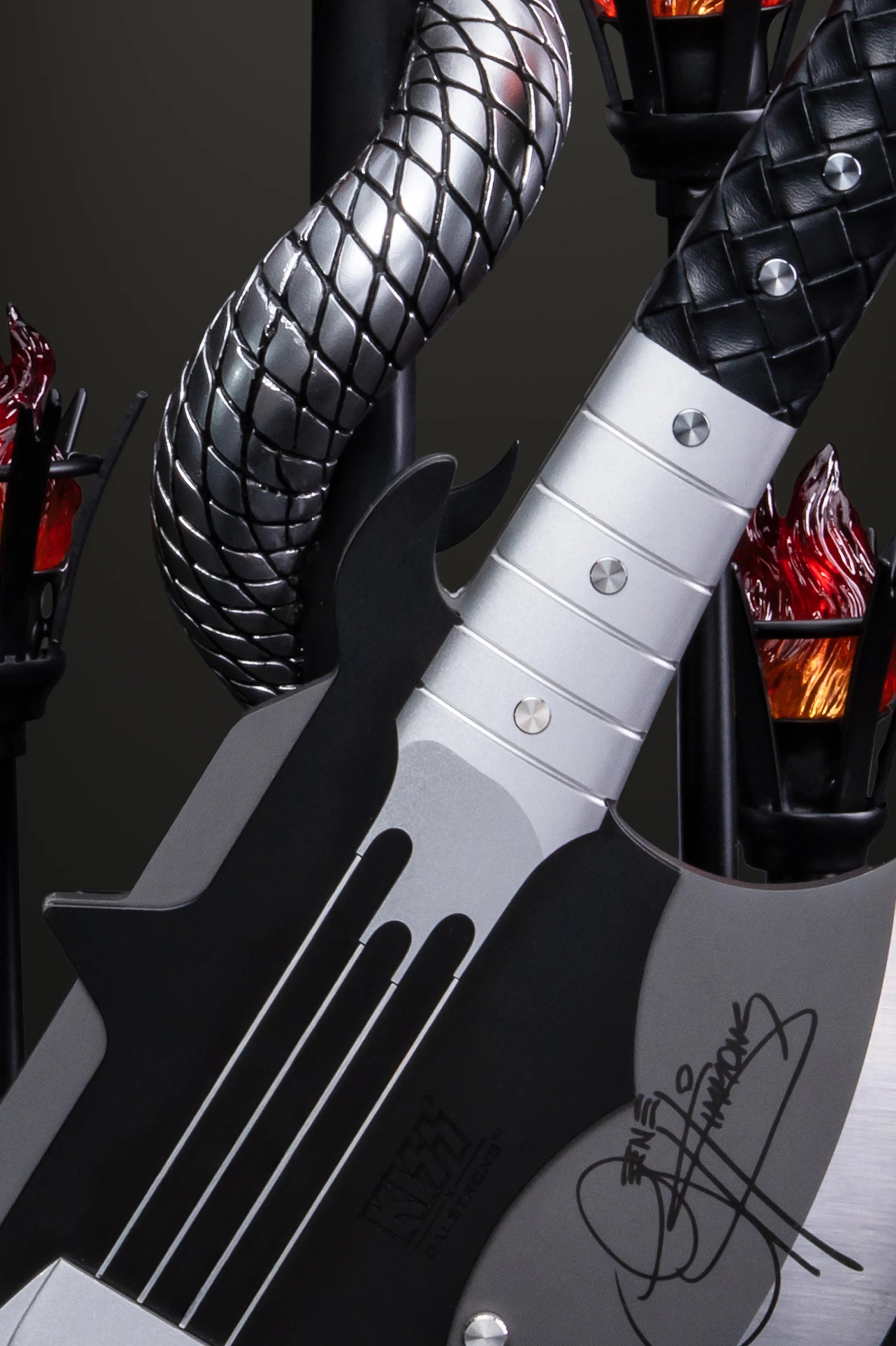 An ultra-limited edition, unapologetically over-the-top tribute to five decades of Thunderock. Meticulously crafted as a piece of functional culinary tool art, Gene Simmons' HELLFIRE DEMON AXE reimagines the legendary Axe Bass in meat-cleaving form. Uniting the axe with Sammy The Serpent, this is a collision of KISS™ history, from humble NYC origins through mega-stardom to the End of The Road at Madison Square Garden. A one-time-only release for the KISS Army who kept the faith, every detail, sharp edge, and finish honors the stagecraft that defined generations of music.