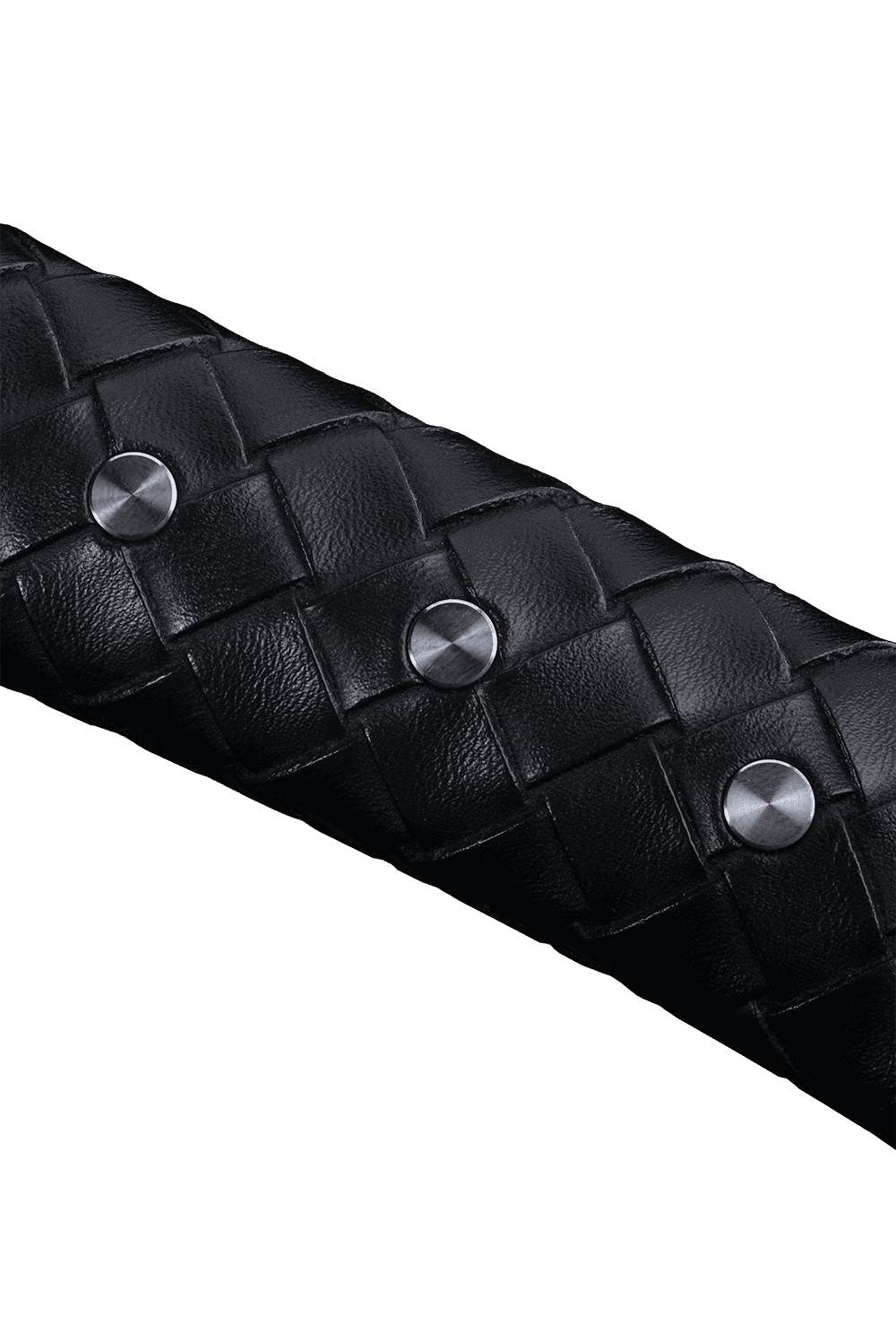 - HANDLE FINISH: Genuine Leather Wrapping, Stainless Steel Spikes