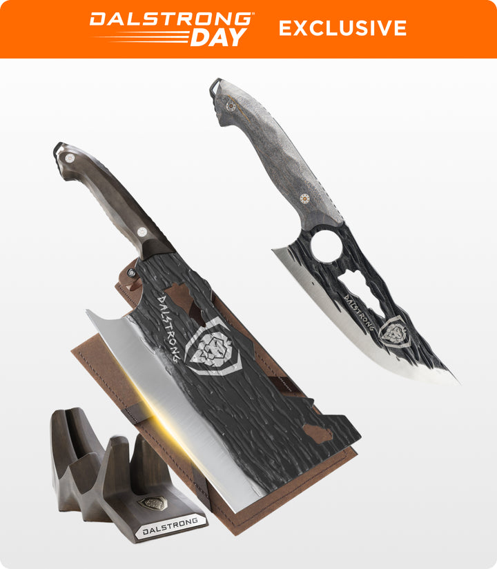 Barbarian Series 9" Obliterator Meat Cleaver with Stand + 7" Venator Knife