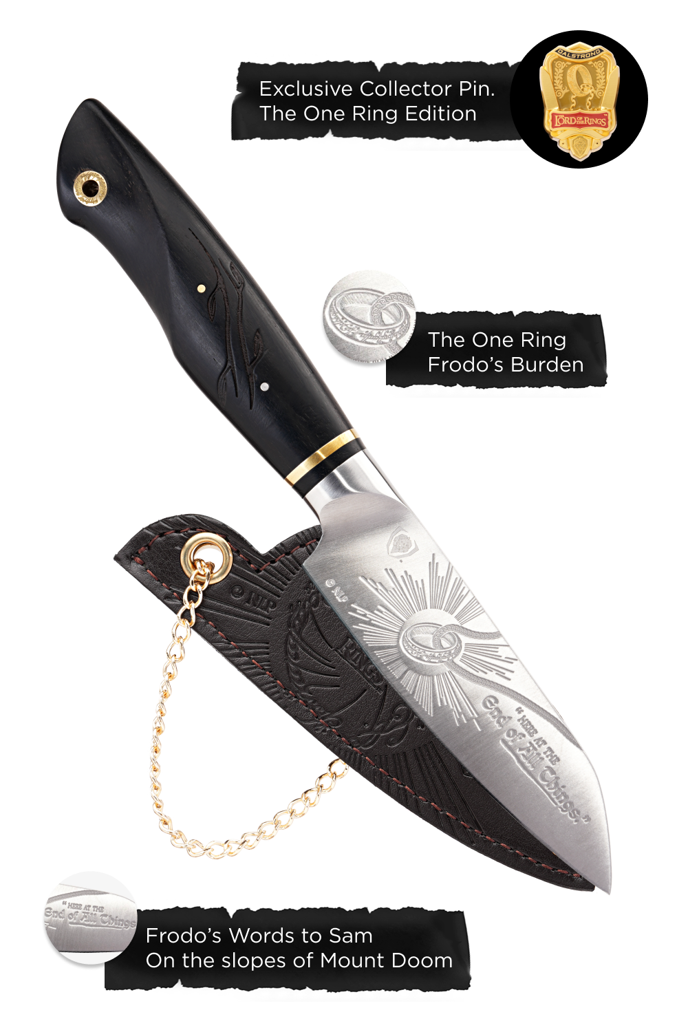 The Lord of the Rings™ Edition 4” Paring Knife proves that even the smallest things can change everything. Just as the destiny of the fellowship rested on Frodo and Sam, the chef’s most exacting challenges rely on the nimble paring knife. Built for precision cuts and crafted to live proudly in any collection, meticulously etched blade artwork depicts Frodo — alone within Mount Doom. The reverse bears The One Ring and the Hobbit’s words to his companion as destiny hung in the balance. The contoured, laser-etched handle of ebony wood rests naturally in the palm, light yet steady through every motion. Whether cherished as a collector’s piece, or used to create meals to remember, small never felt so mighty.Popular add ons