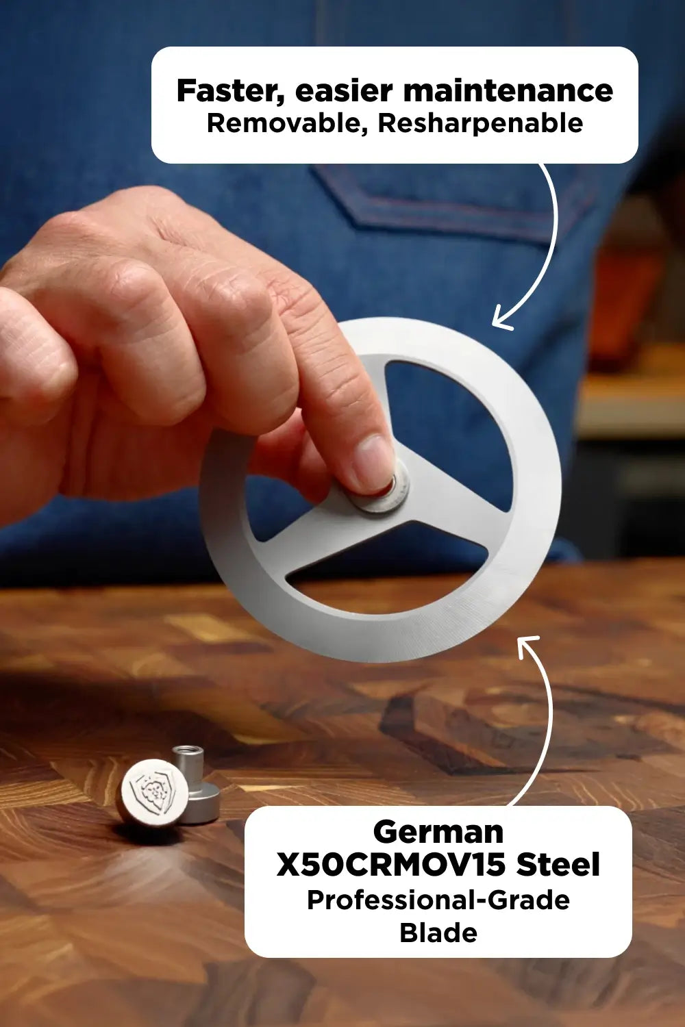 Pizza slicing on a whole new level of performance. A blade forged from world-class German steel on a steadfast handle of premium olive wood. The tri-spoke design and full bolster allows you maximum force. The wheel is removable for sharpening and easy cleaning.