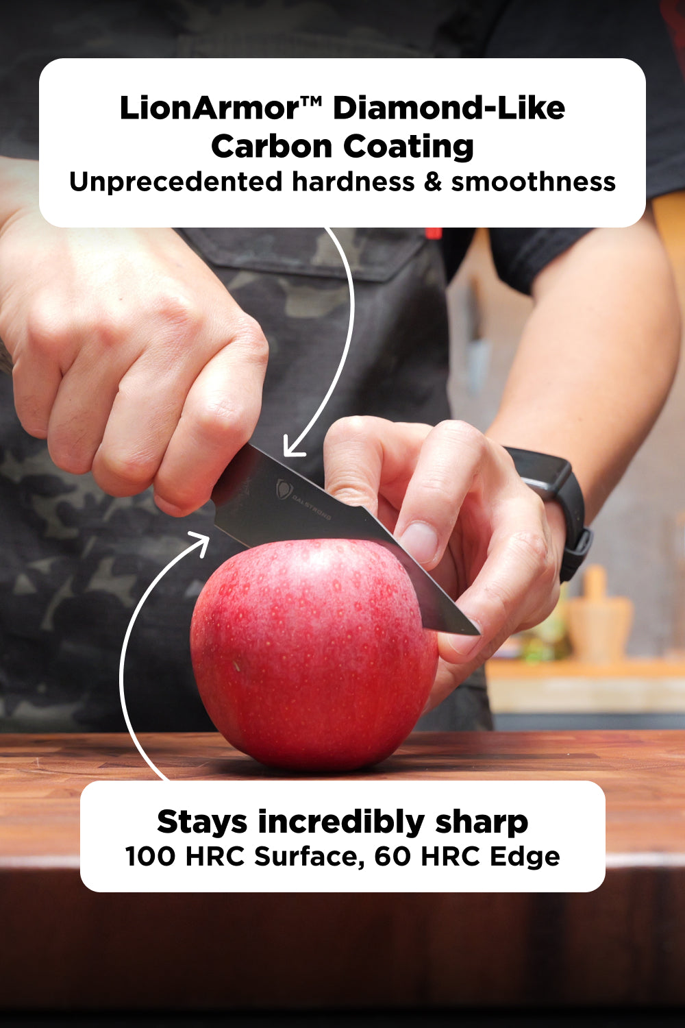 - Special Treatments: Lionshield Diamond-Like Coating (DLC), D3™ Diamond Detailing Sharpening (8-12°), Dalstrong LionShield™ Treatment, Laser Blade Geometry (1.6mm spine thickness)