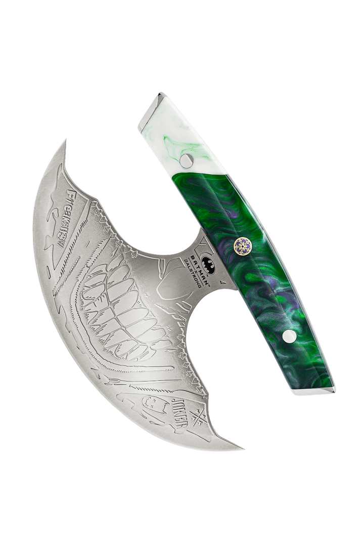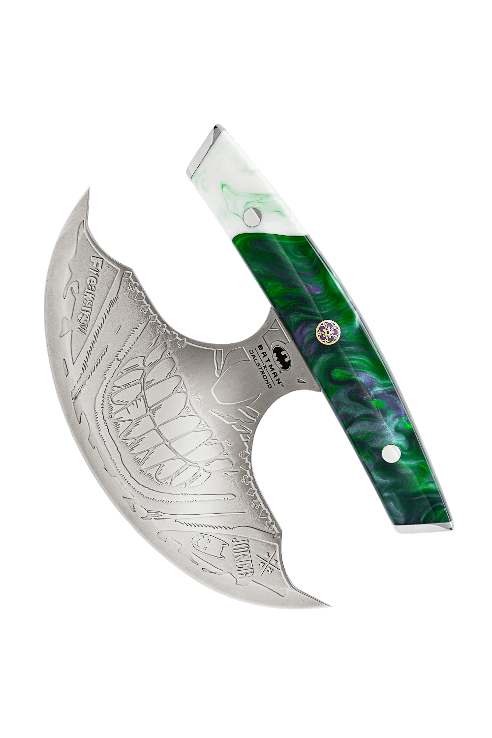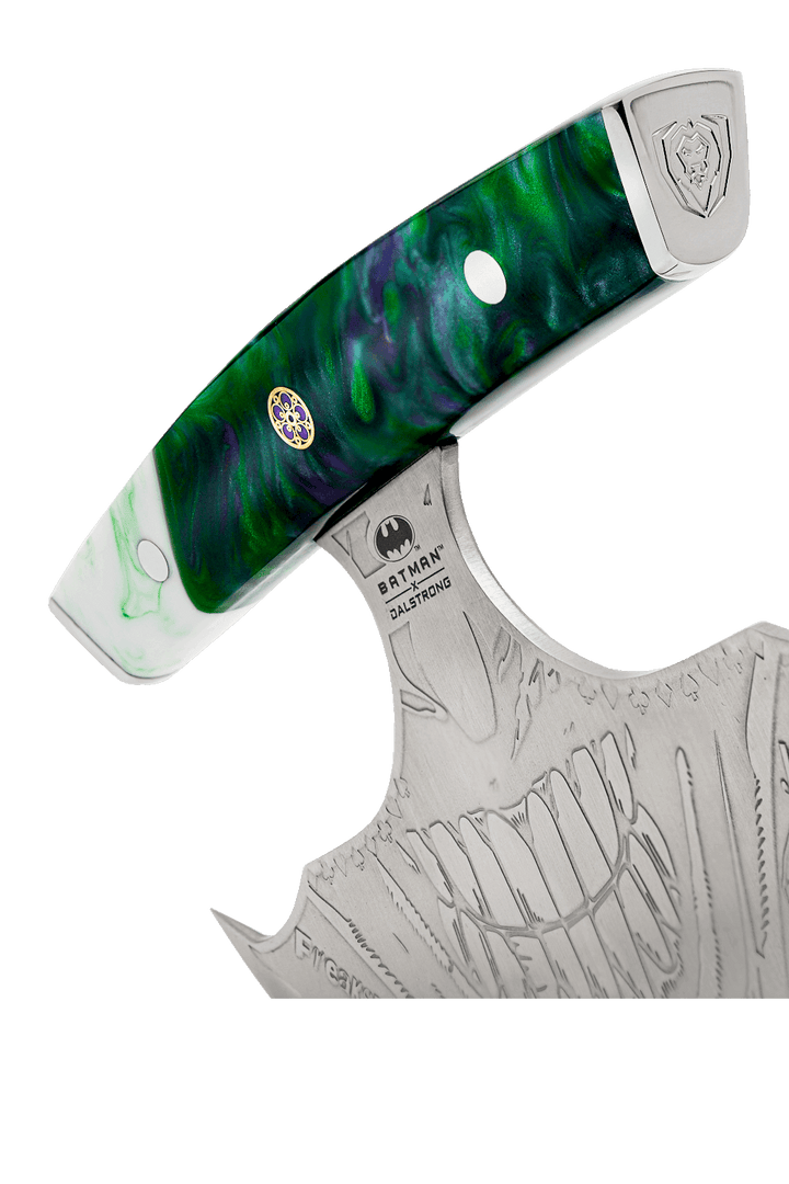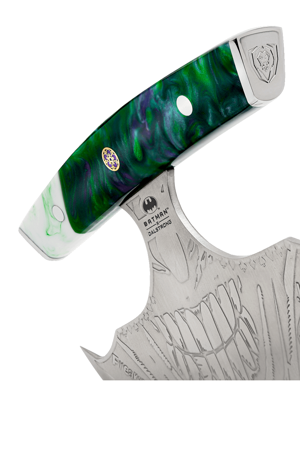 The biggest grin in any kitchen. A rare yet time-honored blade style, the Ulu makes light work of rock chopping, meat mincing, and dough slicing. Engineered to Dalstrong’s world class performance standards and inspired by The Joker’s unmistakable style.