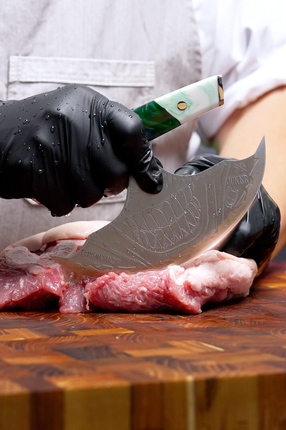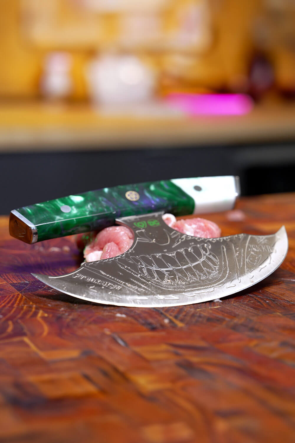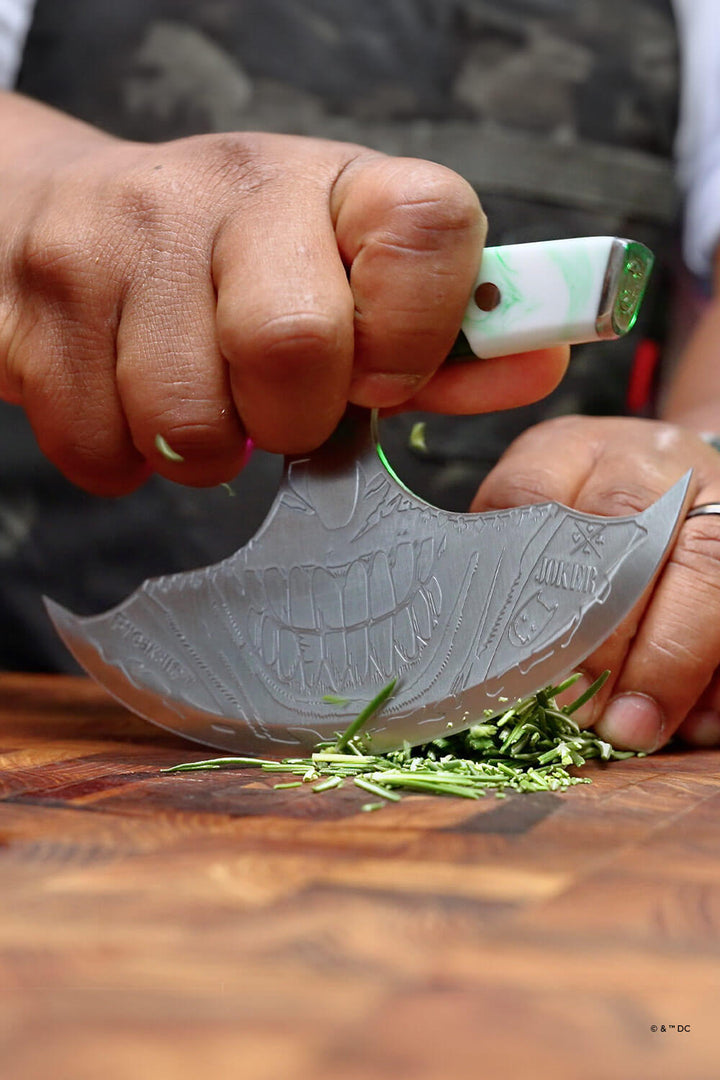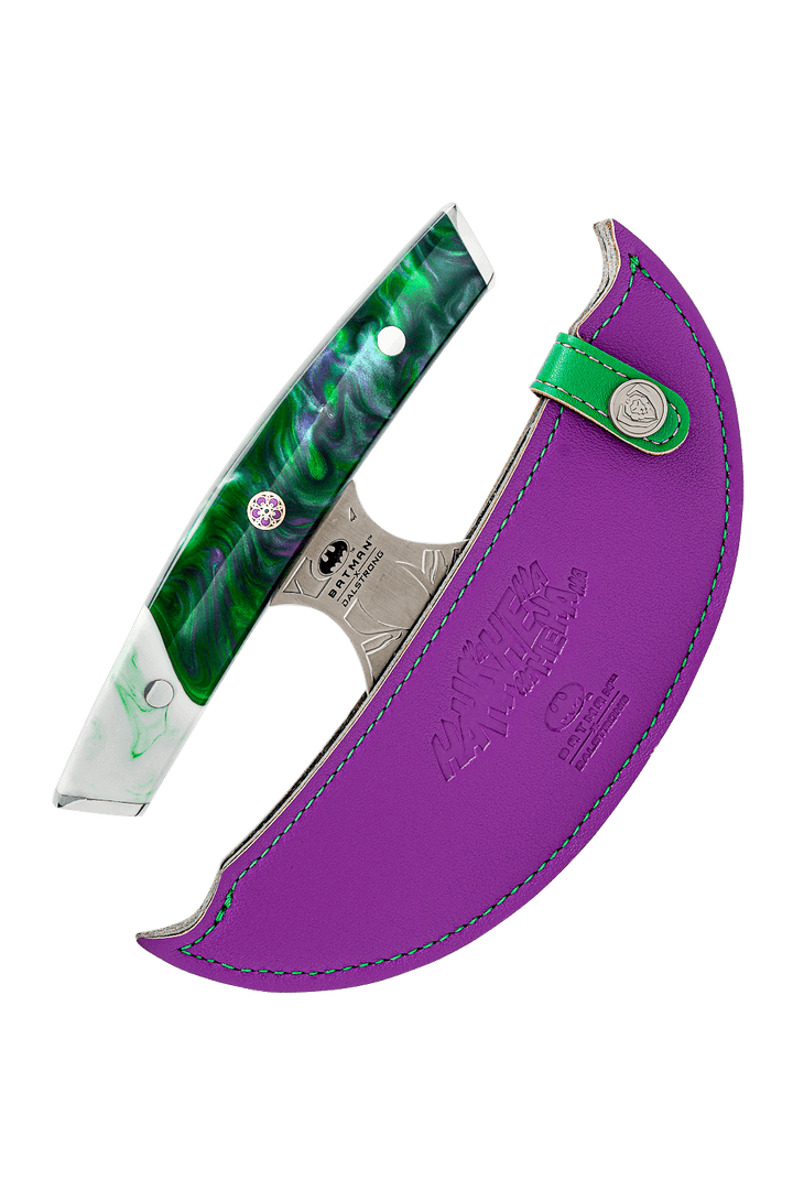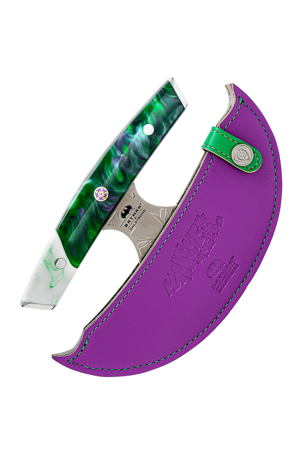 The biggest grin in any kitchen. A rare yet time-honored blade style, the Ulu makes light work of rock chopping, meat mincing, and dough slicing. Engineered to Dalstrong’s world class performance standards and inspired by The Joker’s unmistakable style.