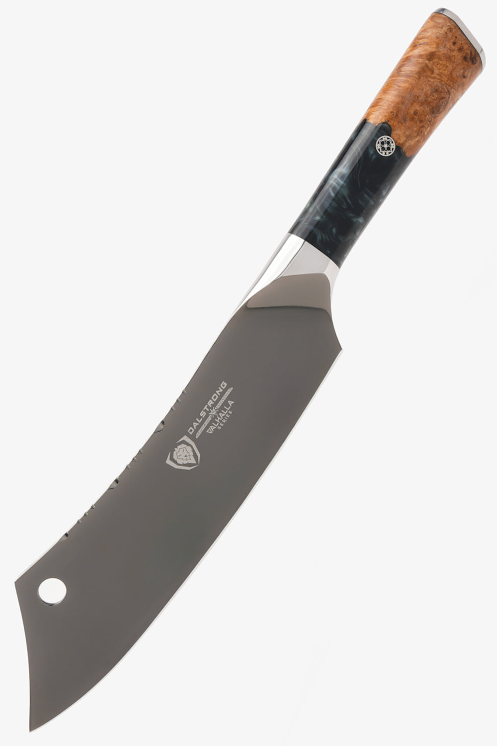 Chef’s knife or cleaver? In paradise, you don’t have to choose. The Valhalla 8" Crixus Knife combines the best features of both for an innovative knife that feels truly sublime, forged of high-carbon steel that will last until the gods call you in for the final battle.