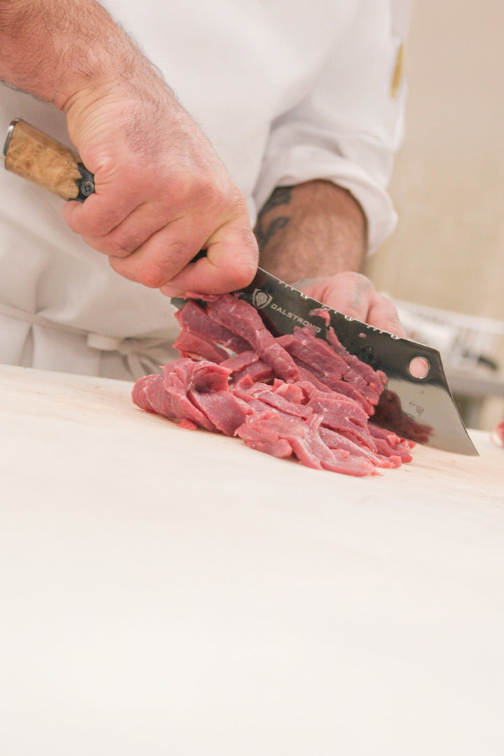 For feasts that won’t be forgotten. A 12” blade forged from a single piece of high carbon stainless steel then hand sharpened to a razor edge to chop, slice, carve, and disjoint with ease – without sawing or hacking.